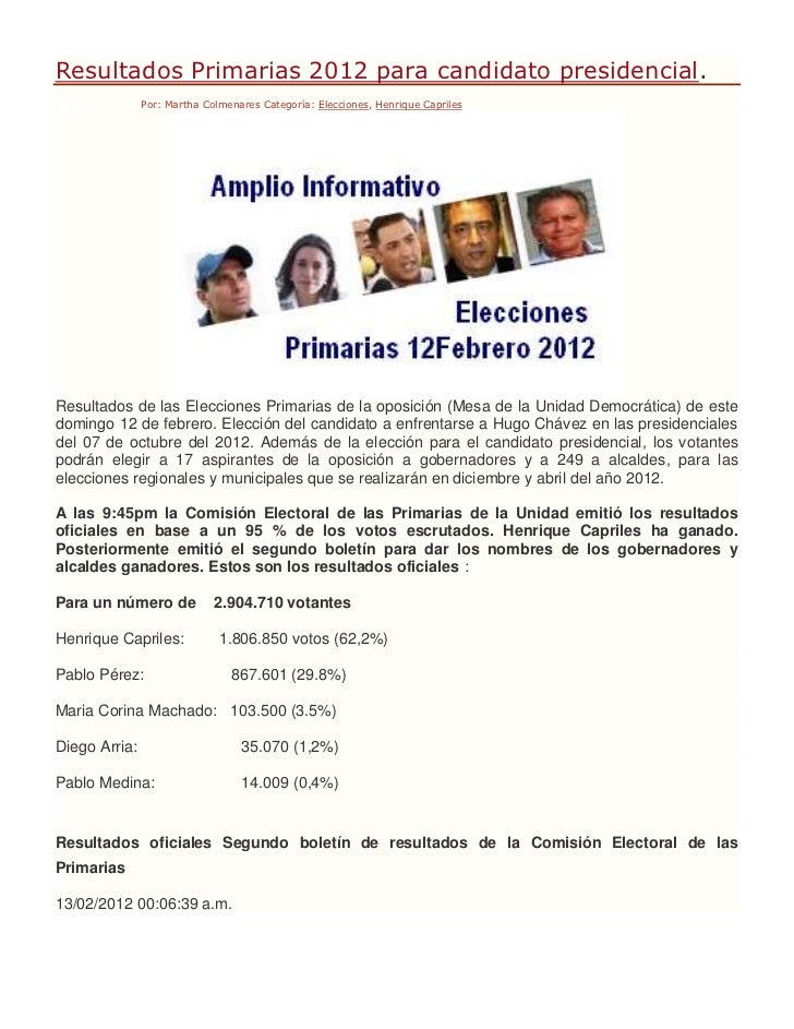 Resultados definitivos de las elecciones primarias from www.valladolidtomalapalabra.org Desde el extranjero +56 229153265. Resultados primarias de alcalde 2016 resultados definitivos elección primaria de presidente y diputados 2013 resultado elección presidencial, parlamentaria y de cores 2013 Jun 09, 2021 · las primarias de ayuso: Resultados primarias de alcalde 2016 resultados definitivos elección primaria de presidente y diputados 2013 resultado elección presidencial, parlamentaria y de cores 2013 Pre candidatos a concejal / miembro comunal; Call center 600 6000 166. Consulta información sobre las características de las escuelas de méxico. Juan es actualmente 'maglia' rosa en un 'giro baby' que está cerca de ganar y que ningún español ha logrado ganar antes